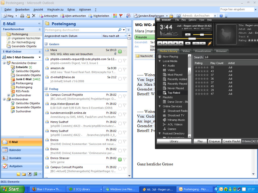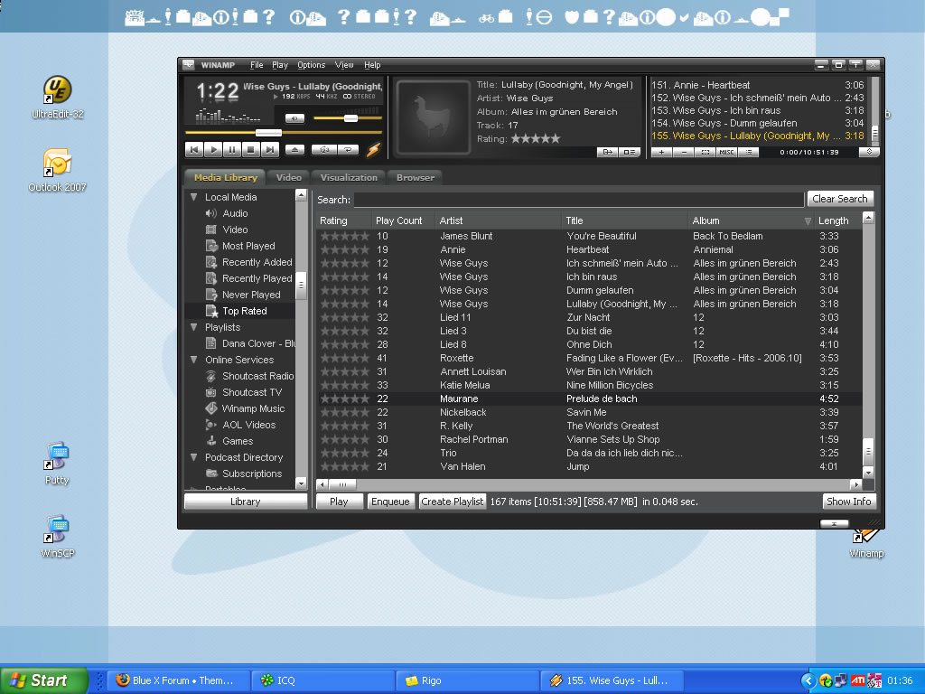 Winamp 5.52 mit Bento Skin, seit Winamp 5.5 nutze ich auch die Bibliothek