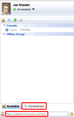 Dennoch ermöglicht er Instant Messaging unter angemeldeten Benutzern, ihr habt hier auch die Möglichkeit, nach anderen Benutzern zu suchen oder Konferenzen (die Wiederauflebung des Blue X Chats) zu betreten.