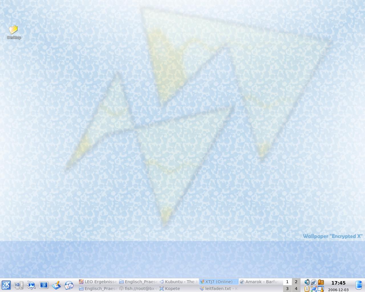 So, mein x-ter Linux Umstieg, aber da Vista bevorsteht, wahrscheinlich erfolgreicher ;) Hier der aktuellste Desktop Screenshot dazu, noch nicht viel geändert (Kubuntu 6.10 Edgy Eft).