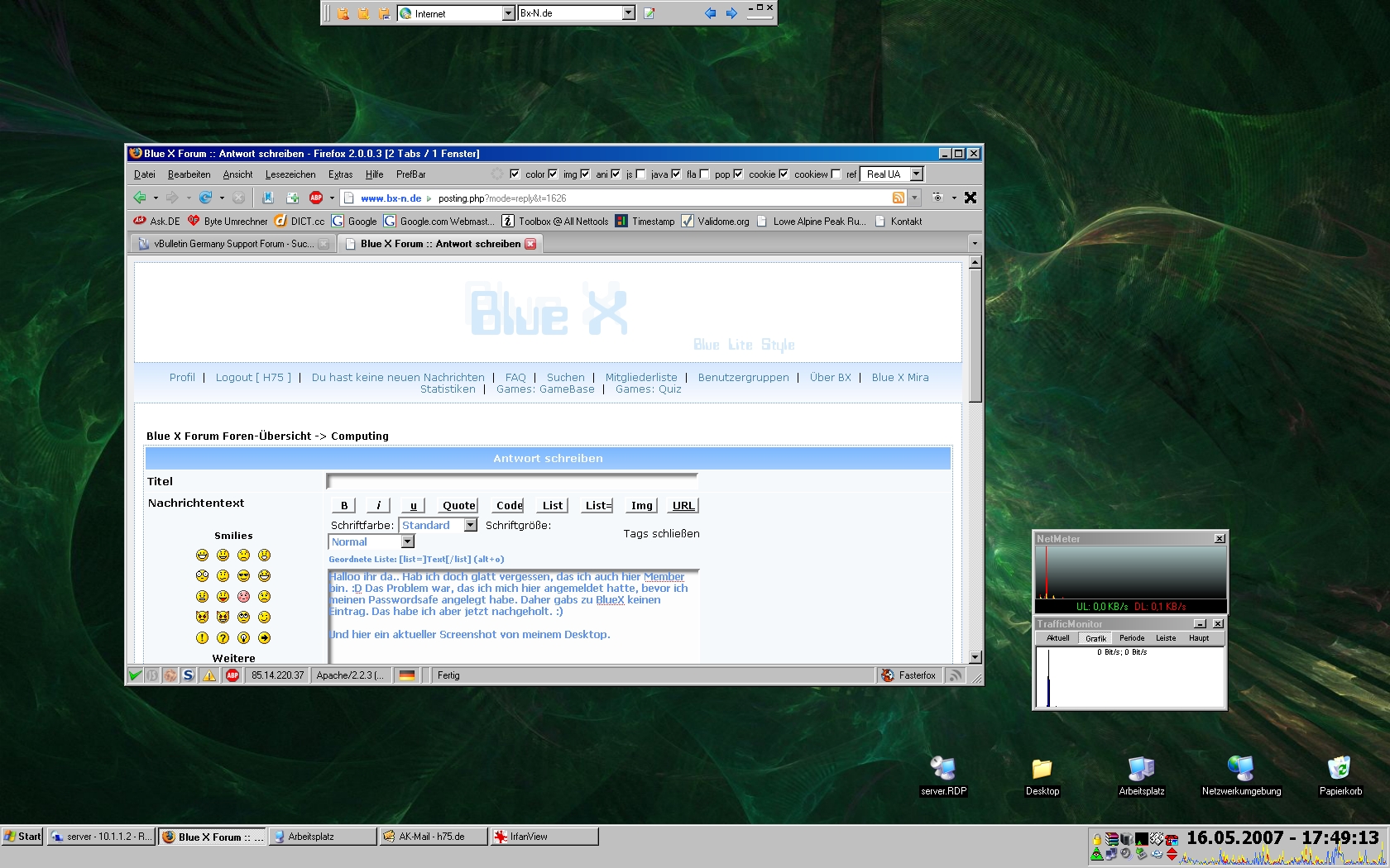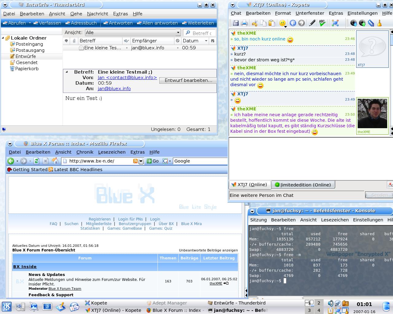Eigentlich wollte ich ja einen Screenshot von meinem Linux-Computer machen, aber irgendwie scheint da der Monitor gerade nicht mitzumachen ;) Als Entschädigung ein aktueller Screenshot meines Windows-Computers (für xxoun dank Kaspersky wohl eher eine Demütigung :D).